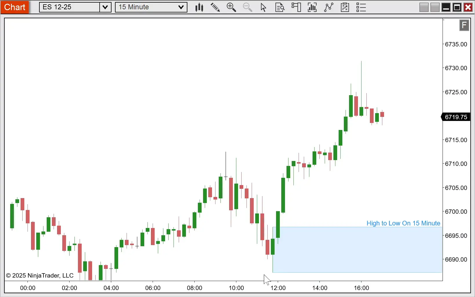 When inactive, the line uses NinjaTrader’s default bar snapping, which aligns to the bar’s closing time.