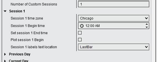 A custom session can consist of only a beginning time. For example, to mark the New York Stock Exchange opening price as a level, configure the custom session with the opening time only.